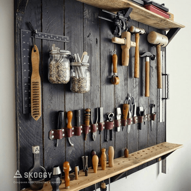 Суть этой системы проста, как всё гениальное. Все инструменты крепятся на стене. Конечно, придется выделить под это стену, но оно стоит того!
