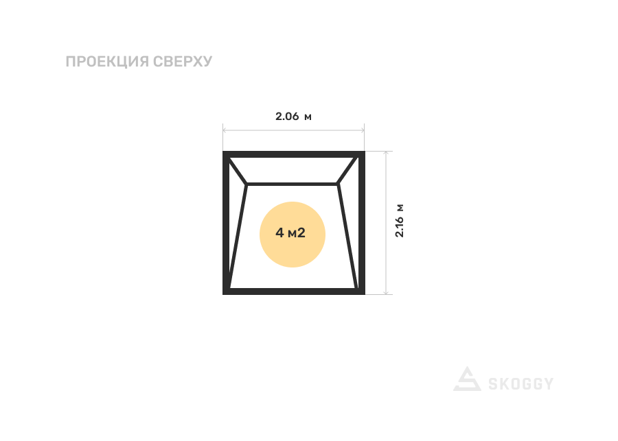 По своей конструкции контейнер Skoggy представляет модульное сооружение, которое состоит из сборных элементов. При сборке элементы устанавливаются один в другой и фиксируются болтовыми соединениями. Конструкция дверей, крыши и стен представляют собой каркас из сложногнутого профиля толщиной 0,7 мм. Каркас обшивается профлистом НС-35 толщиной 0,45-0,55 мм. Такая толщина оптимальна для обеспечения прочности и устойчивости конструкции.