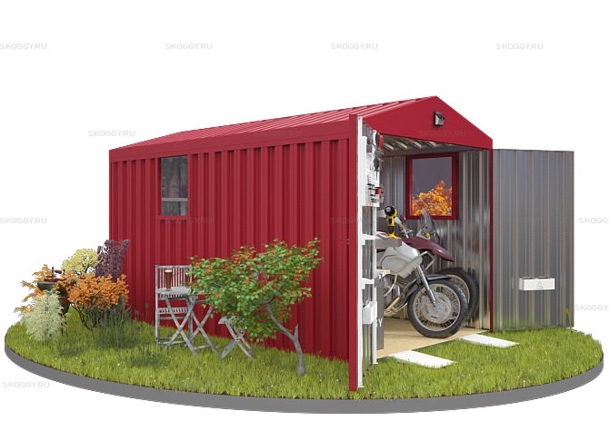 Хозблок имеет длину 4 м – достаточно вместительный. Подойдет для мототехники и крупного оборудования.