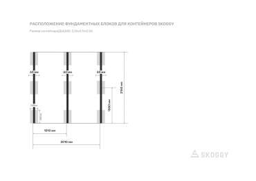 Для монтажа контейнеров SKOGGY не требуется подготовка фундамента, достаточно установить фундаментные блоки. Ниже представлена схема расстановки: