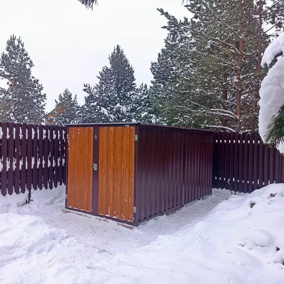 Нами была изготовлена 4-метровая конструкция с плоской крышей и торцевой воротной группой в красивейшей двойной расцветке. Хозяин участка увидел на нашем сайте в выполненных проектах варианты комбинированной расцветки и принял решение оформить постройку в шоколадном цвете RAL 8017, а на воротную группу нанести принт «под дерево» Наив Натурал, чтобы ворота не сливались по цвету с забором на участке.
