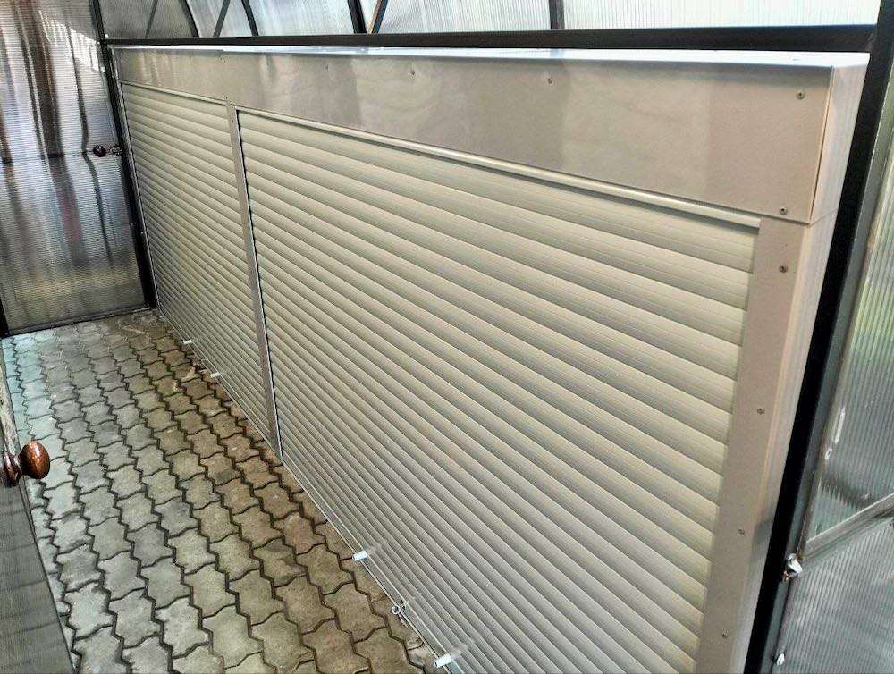 Нами были изготовлены две конструкции размером 2,05 х 1,51 х 0,45 м в светло-сером цвете RAL 7004. Дополнительно шкафы оборудовали малыми полками, по две полки в каждом шкафу.