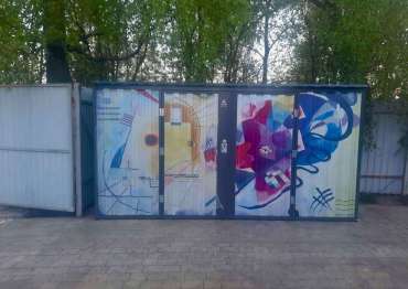 Так как это должен быть не просто гараж, а дополнение к подарку на день рождения ребенка, конструкция должна была получить красивый облик. В качестве изображения была выбрана картина известного художника-абстракциониста Василия Кандинского.
