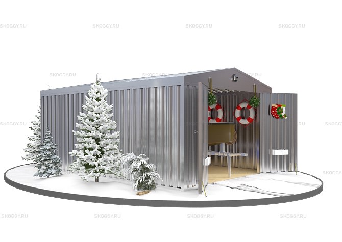По своей конструкции контейнер Skoggy представляет модульное сооружение, которое состоит из сборных элементов. При сборке элементы устанавливаются один в другой и фиксируются болтовыми соединениями. Конструкция дверей, крыши и стен представляют собой каркас из сложногнутого профиля толщиной 0,7 мм. Каркас обшивается профлистом НС-35 толщиной 0,45-0,55 мм. Такая толщина оптимальна для обеспечения прочности и устойчивости конструкции.