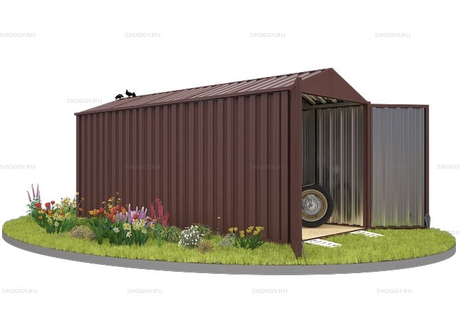 Компания SKOGGY представляет вашему вниманию секционный контейнер с двускатной крышей 2 х 5 м. Главным предназначением конструкции является хранение вещей, инструментов и материалов.
