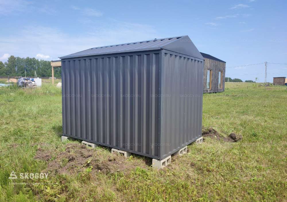 Металлический контейнер с двускатной крышей и торцевой дверью предназначен для хранения различных вещей, материалов, оборудования. Просторный и вместительный контейнер станет отличным помощником в дачном и домашнем хозяйстве, на строительной площадке.