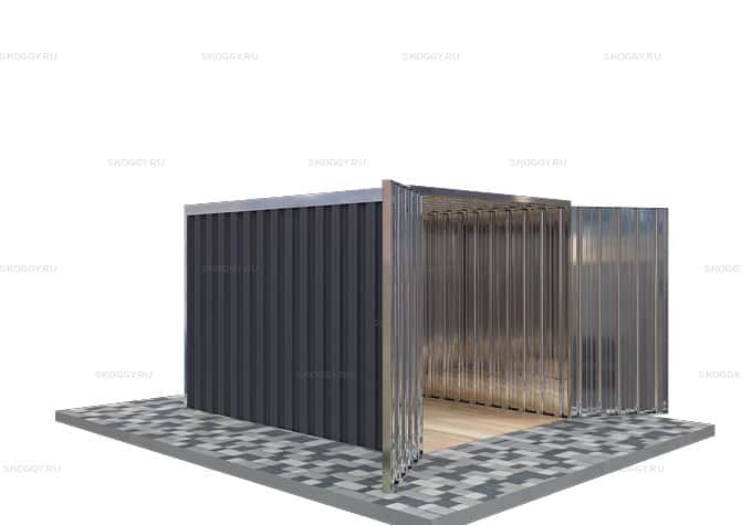 Металлический контейнер сборно-разборного типа, предназначенный для хранения различных вещей, оборудования, материалов. Конструкция удобна для транспортировки: контейнер быстро разбирается в компактный пак. Также быстро контейнер собирается на месте. Для установки сооружения не требуется фундамент, достаточно наличие ровной площадки.